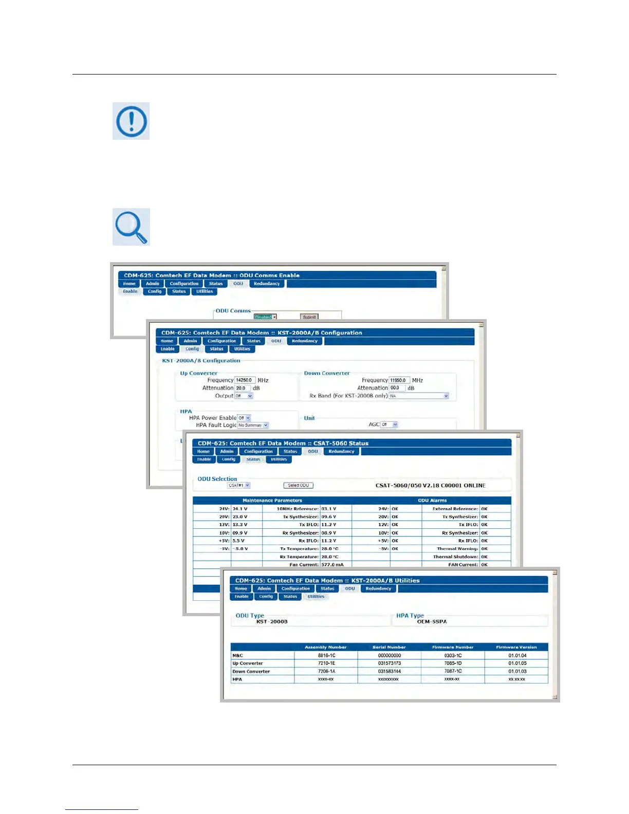 Figure 6-48. ODU Page Examples (Enable, Config, Status, and Utilities)