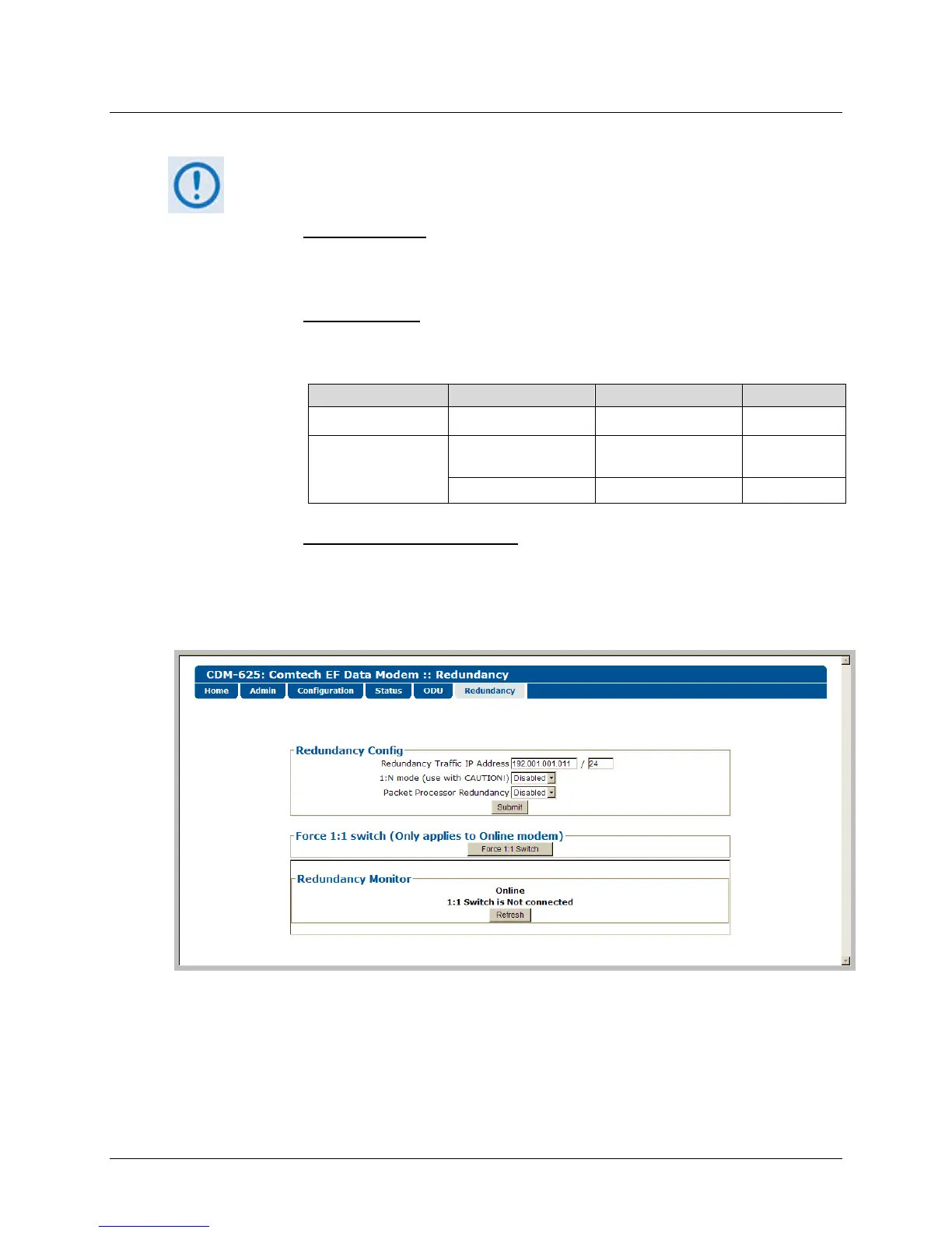 information on using the CDM-625 in a redundancy configuration.
