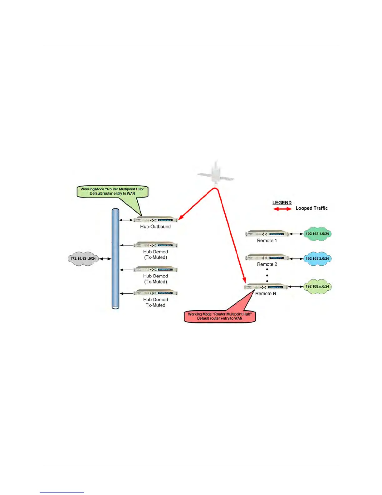 When a CDM-625’s working mode is configured as “Router Multipoint Hub”, the modem is