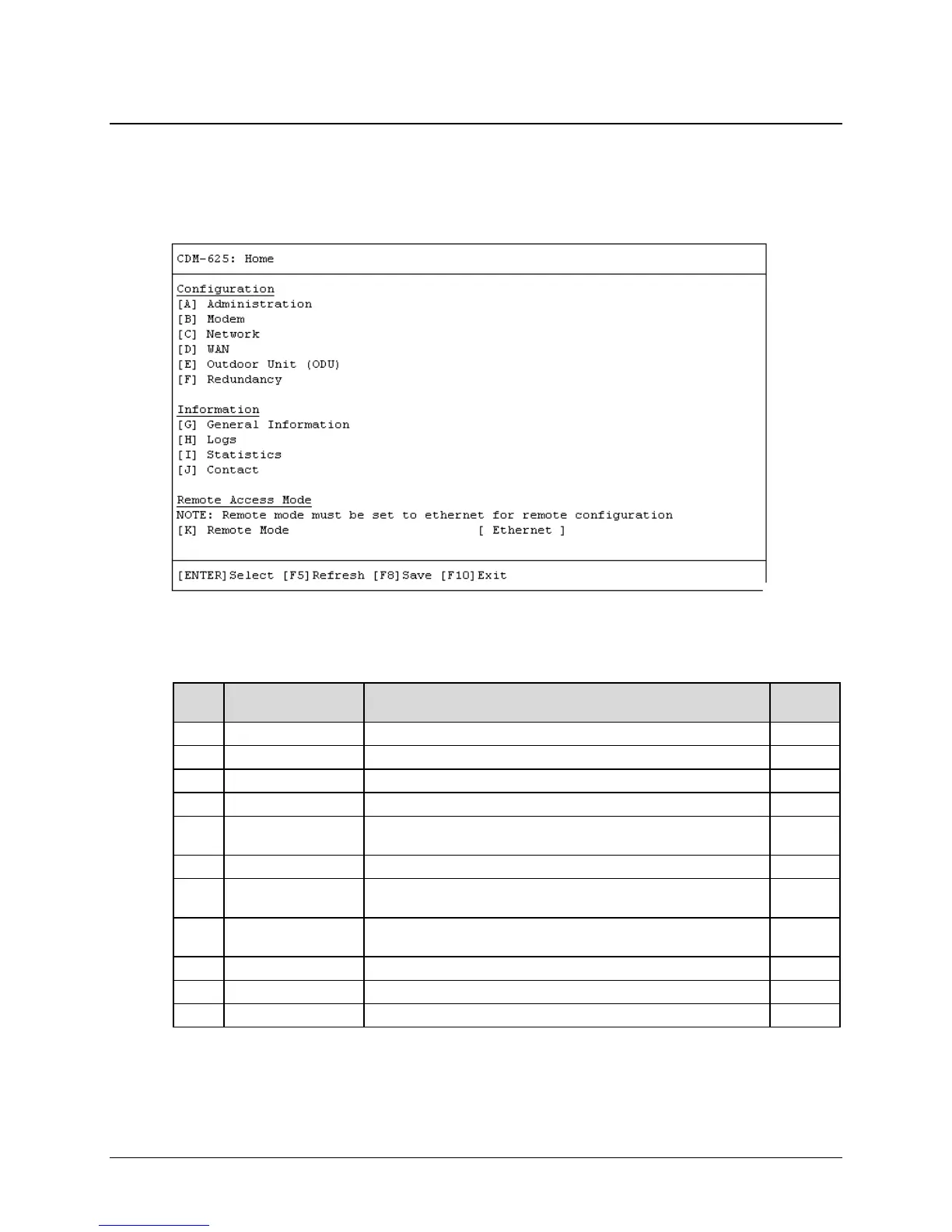 Telnet CLI’s Remote Access Mode is set to [Ethernet], press a hot key to access a configuration