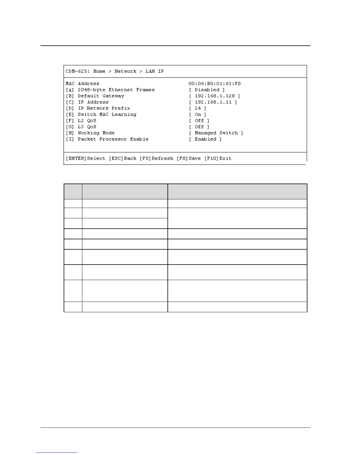 Open the LAN IP page from the Network submenu. This page contains the following options: