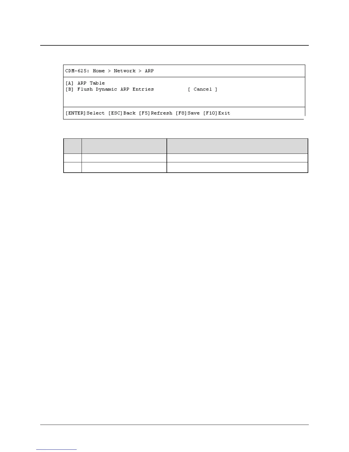 Press a hot key to view the ARP Table or open the dialog window. Otherwise, press [ESC] to