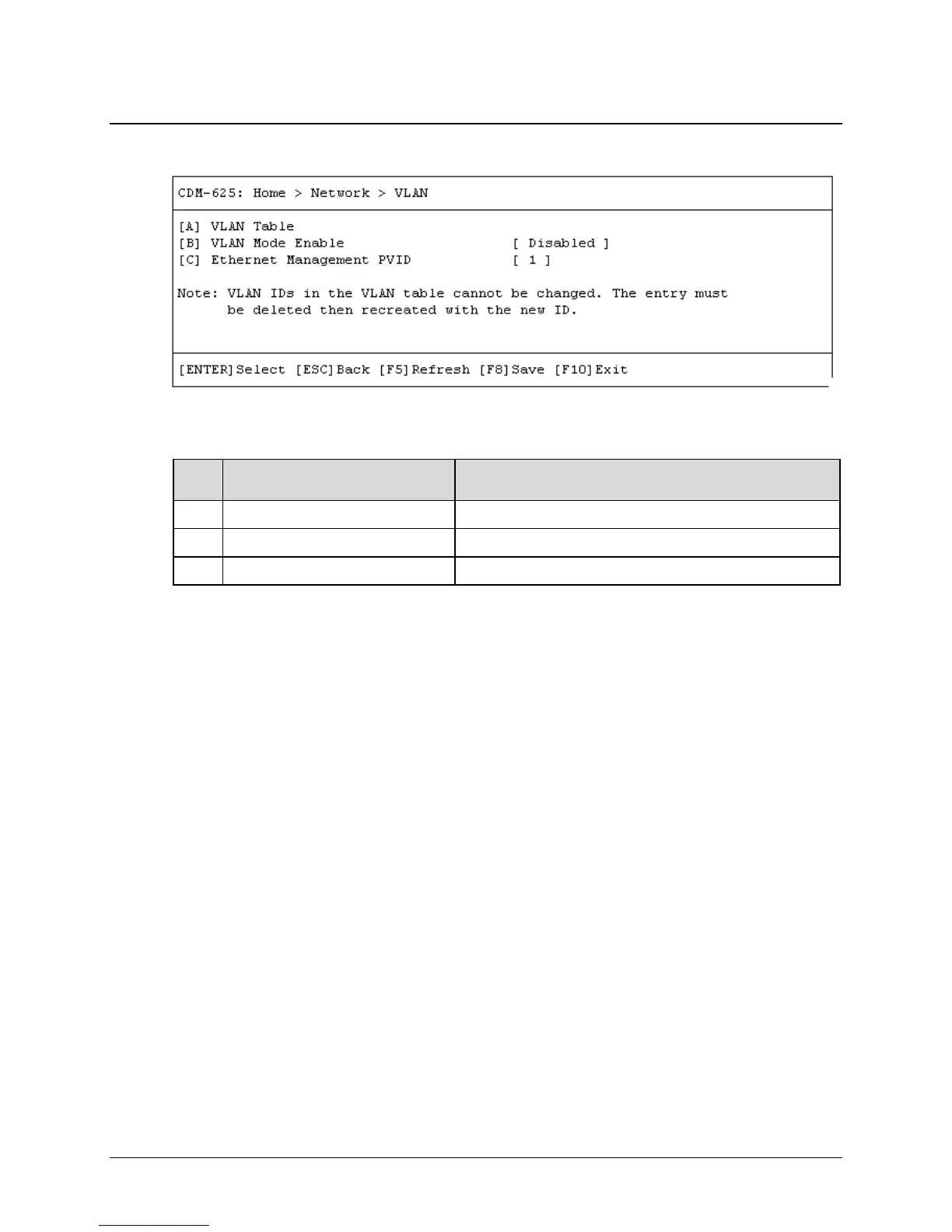 Press a hot key to open the VLAN Table or a dialog window. Otherwise, press [ESC] to return to