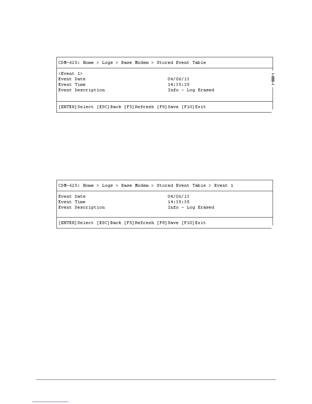 E.3.9.1.1 Home > Logs > Base Modem > Stored Event Table