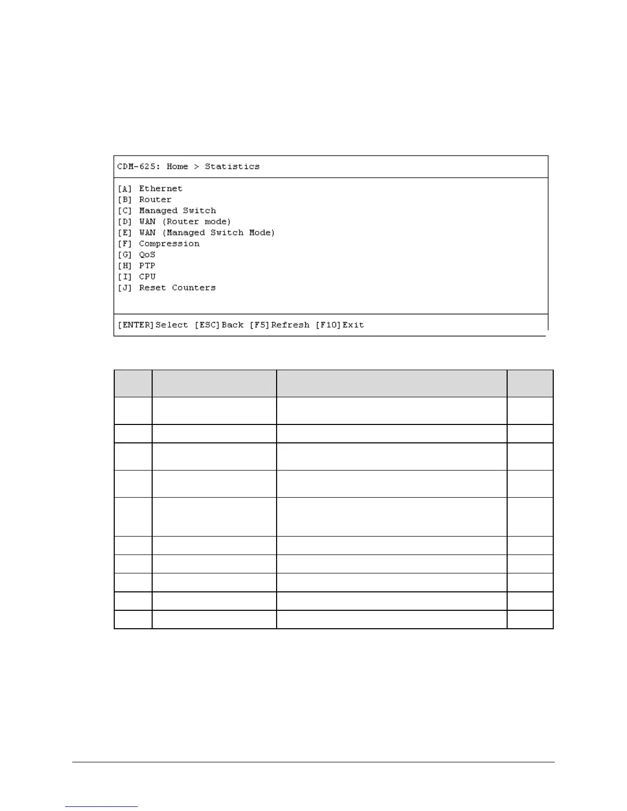 The Telnet CLI Statistics submenu provides access to a number of read-only informational pages.