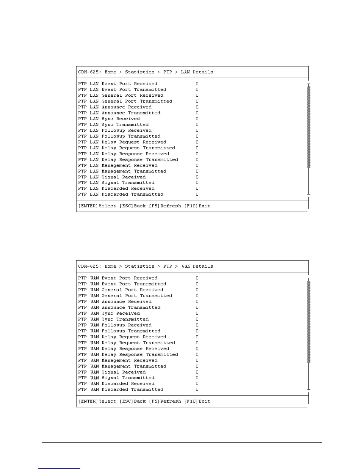 Open the LAN Details statistics page from the PTP page. Otherwise, press [ESC] to return to the