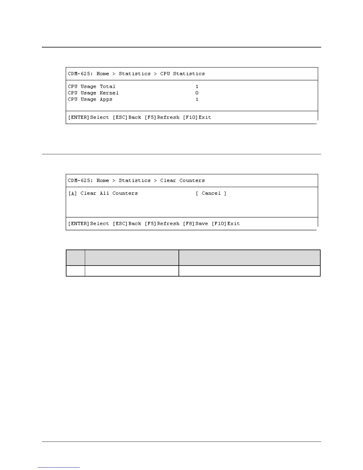 Open the CPU statistics page from the Statistics submenu. Otherwise, press [ESC] to return to