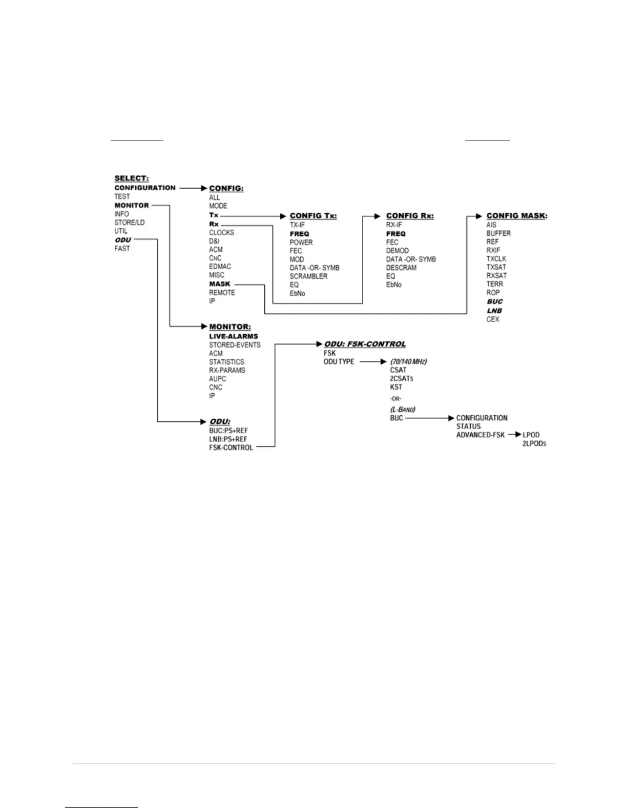 monitor, and control of a Comtech EF Data ODU. More specifically, menu branches that