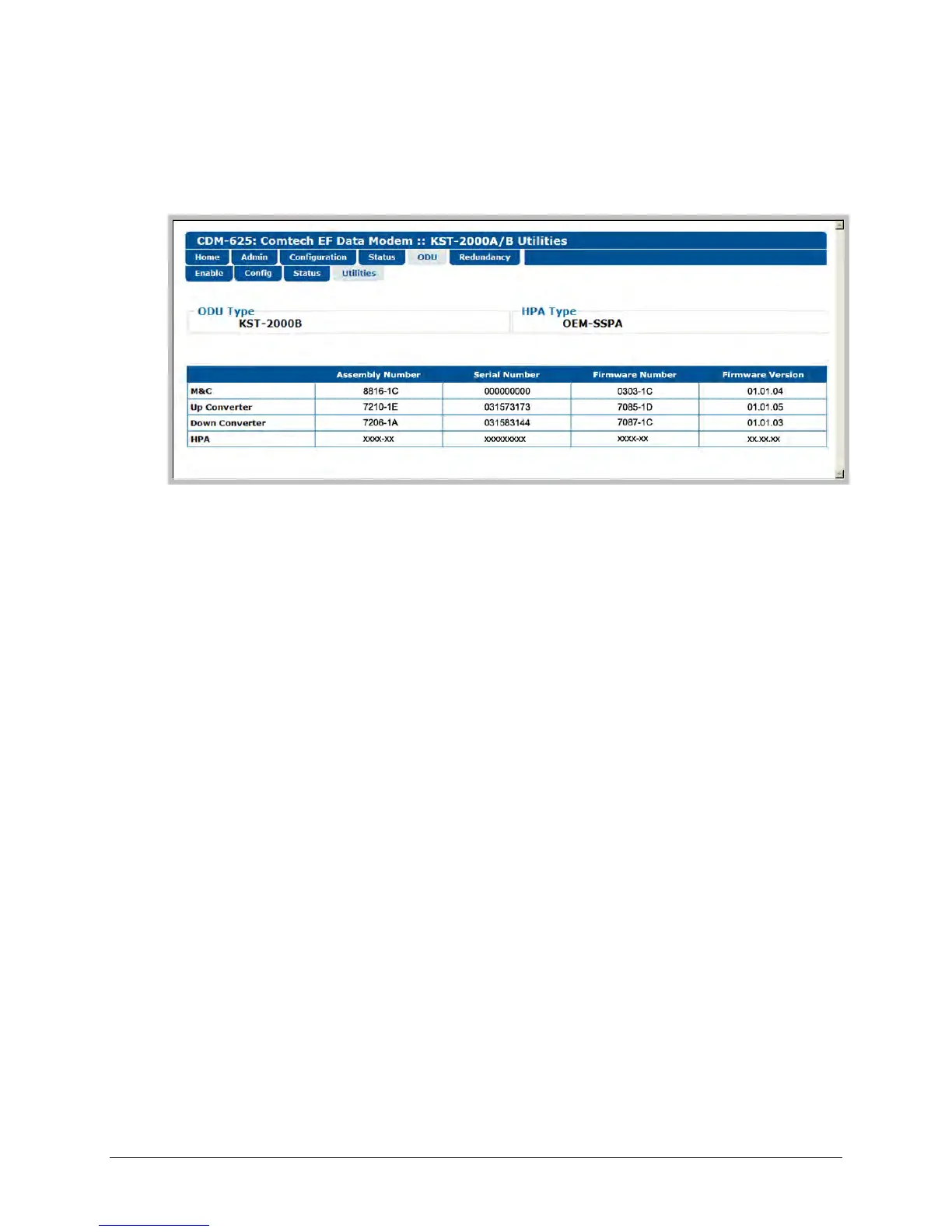 Figure F-14 shows the read-only ‘ODU | Utilities’ page as it appears when you configure the