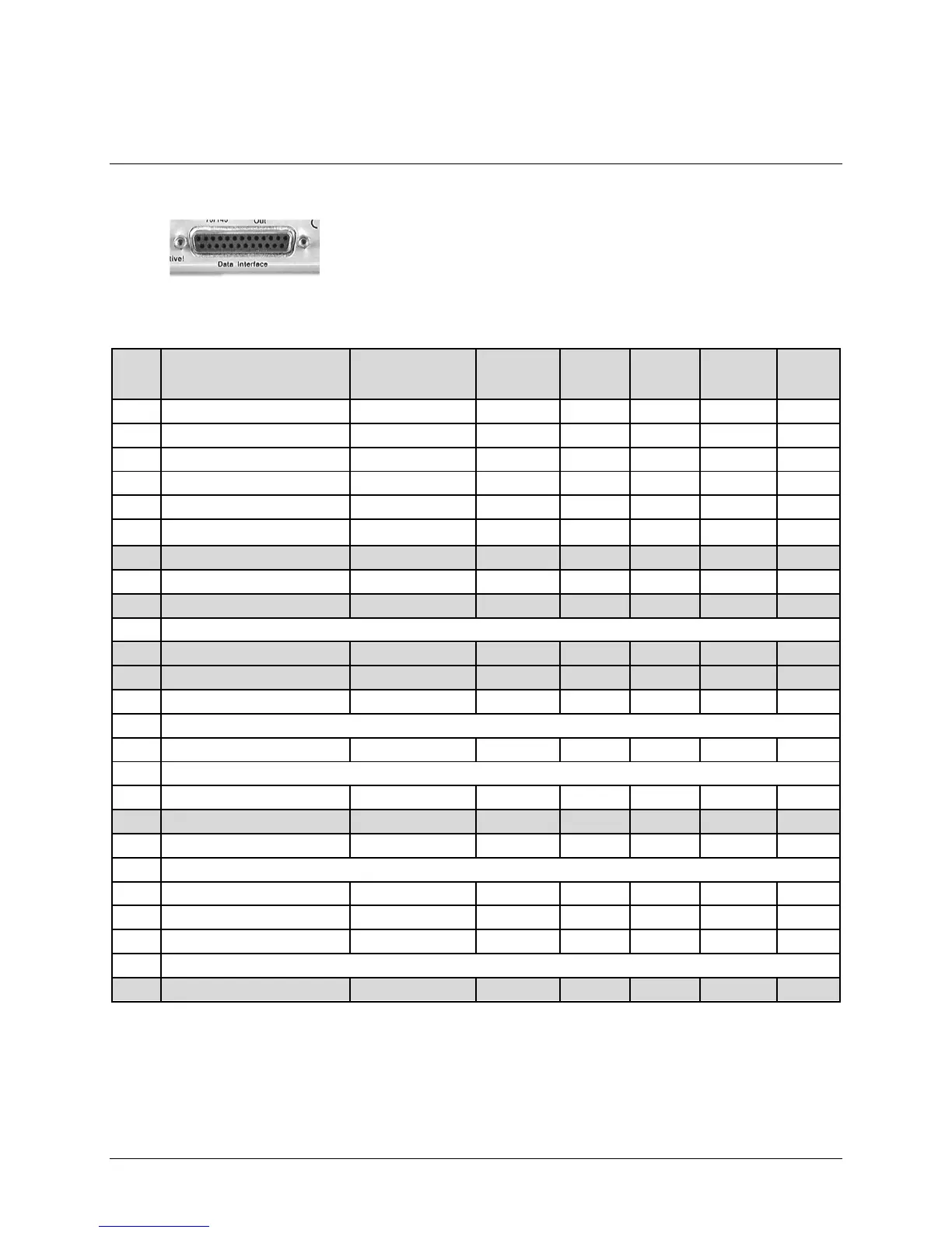 The Data Interface connector is a 25-pin, Type ‘D’ female interface that