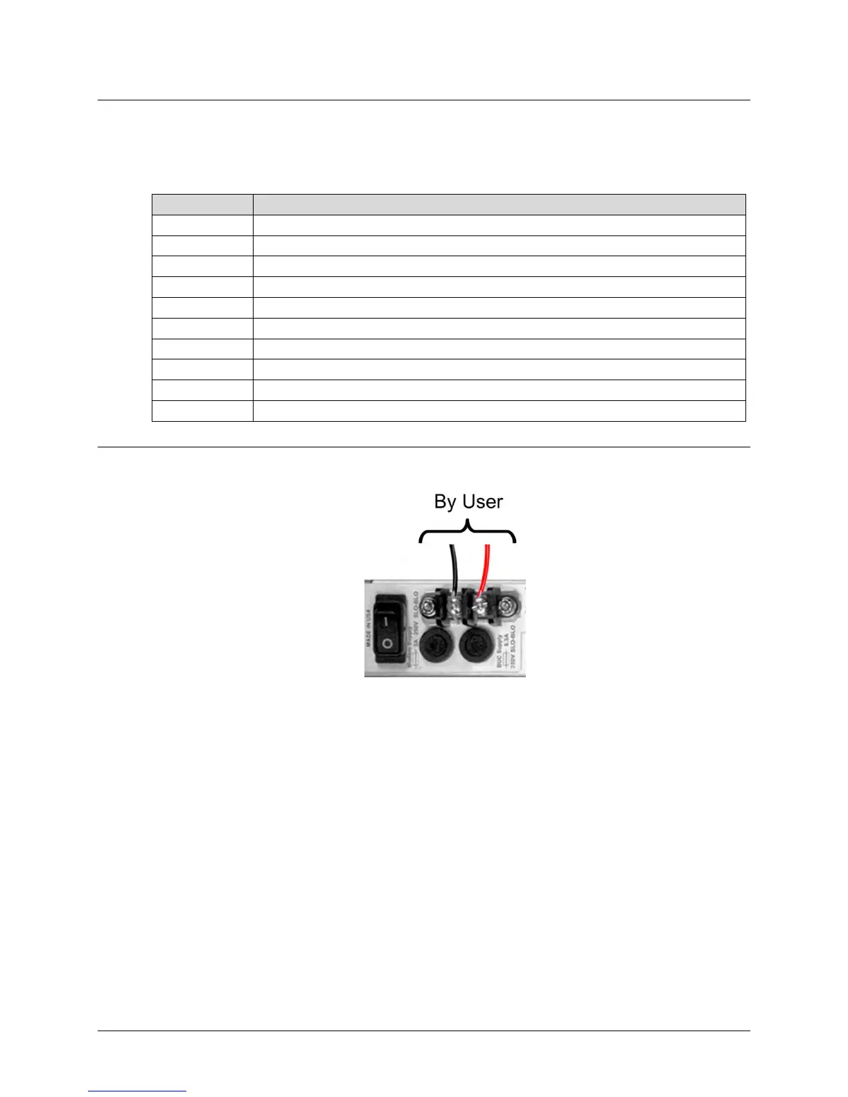 • First, connect the user-supplied (+) and (–) DC power leads to their respective terminals.
