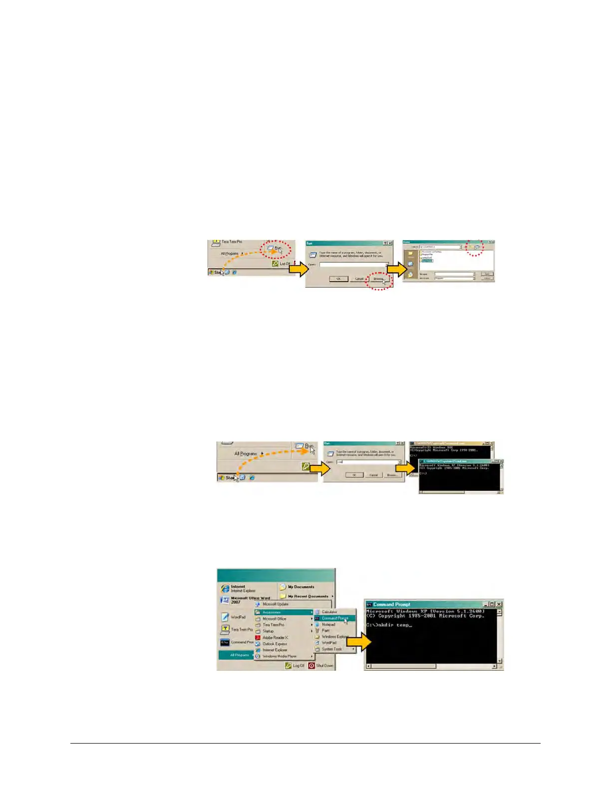 o Finally, from the Command-line prompt (c:\>), type “mkdir temp” or “md temp”