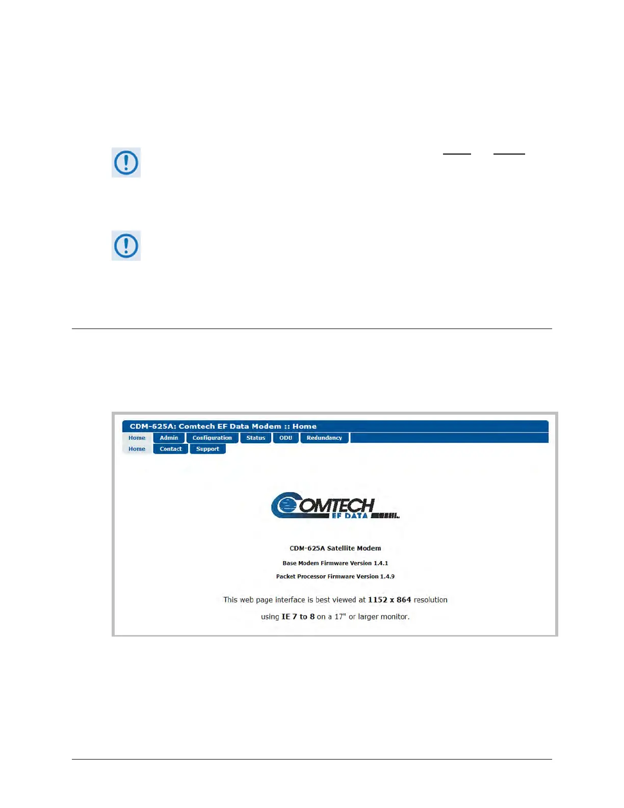 Figure 7-3. CDM-625A Satellite Modem Home page