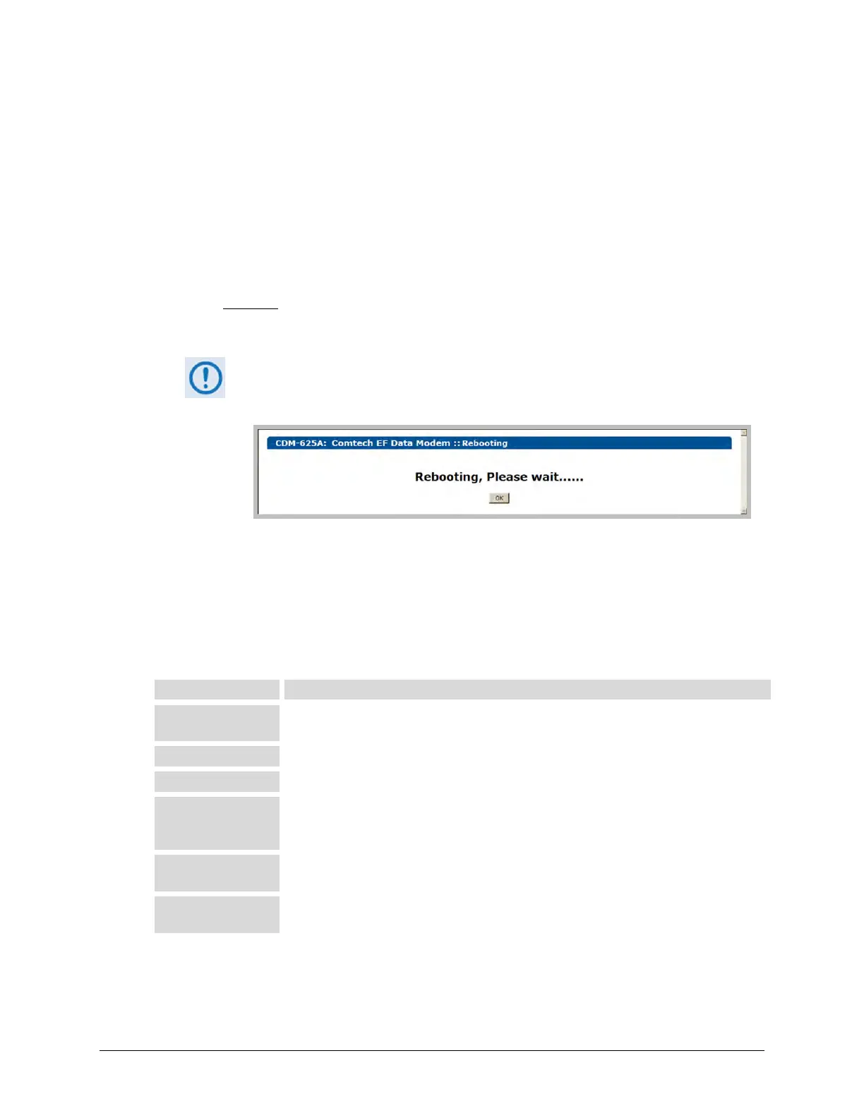 Note that, before clicking [OK] to proceed with reboot of the modem, you may