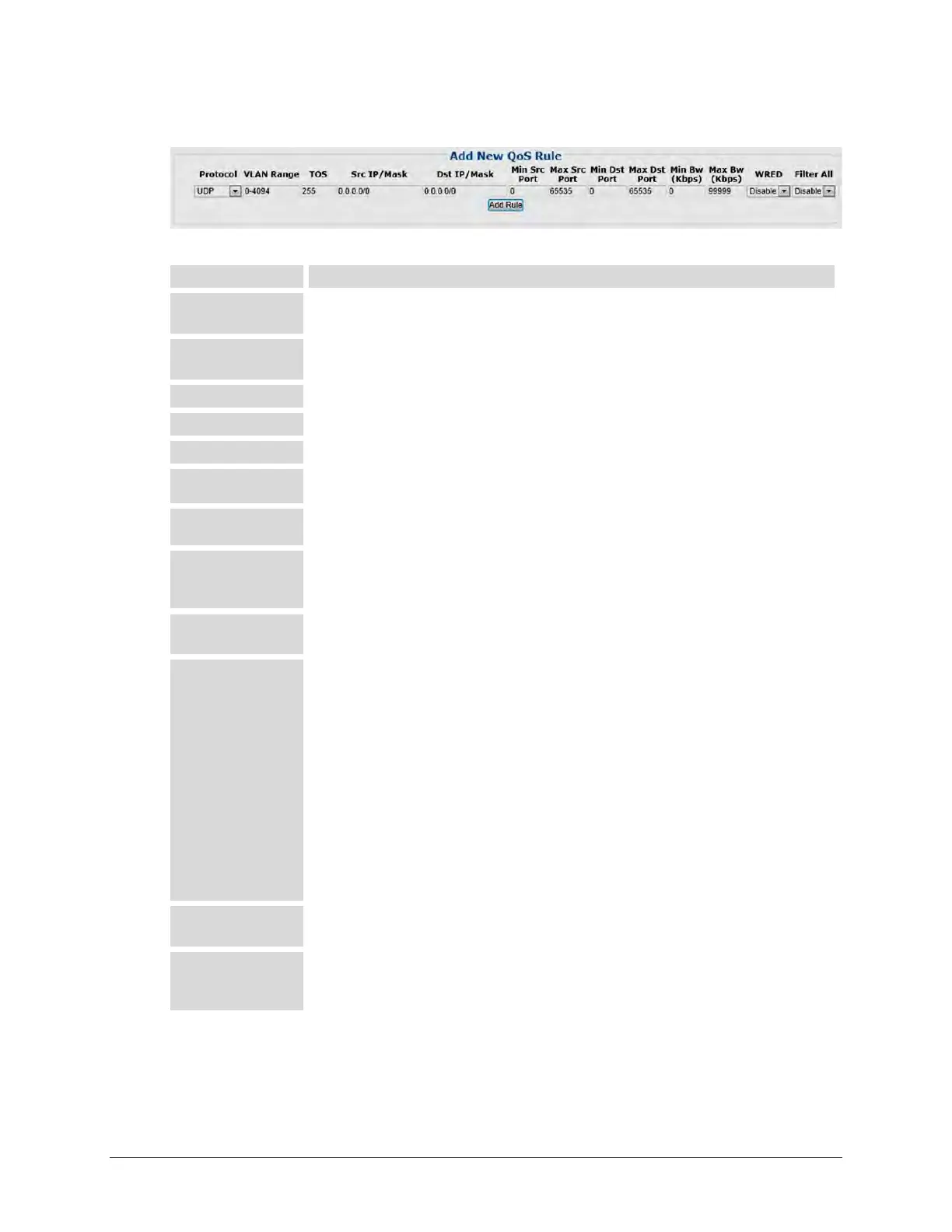 For either page, click [Add Rule] to execute the addition of the new rule to the QoS Rules Table.