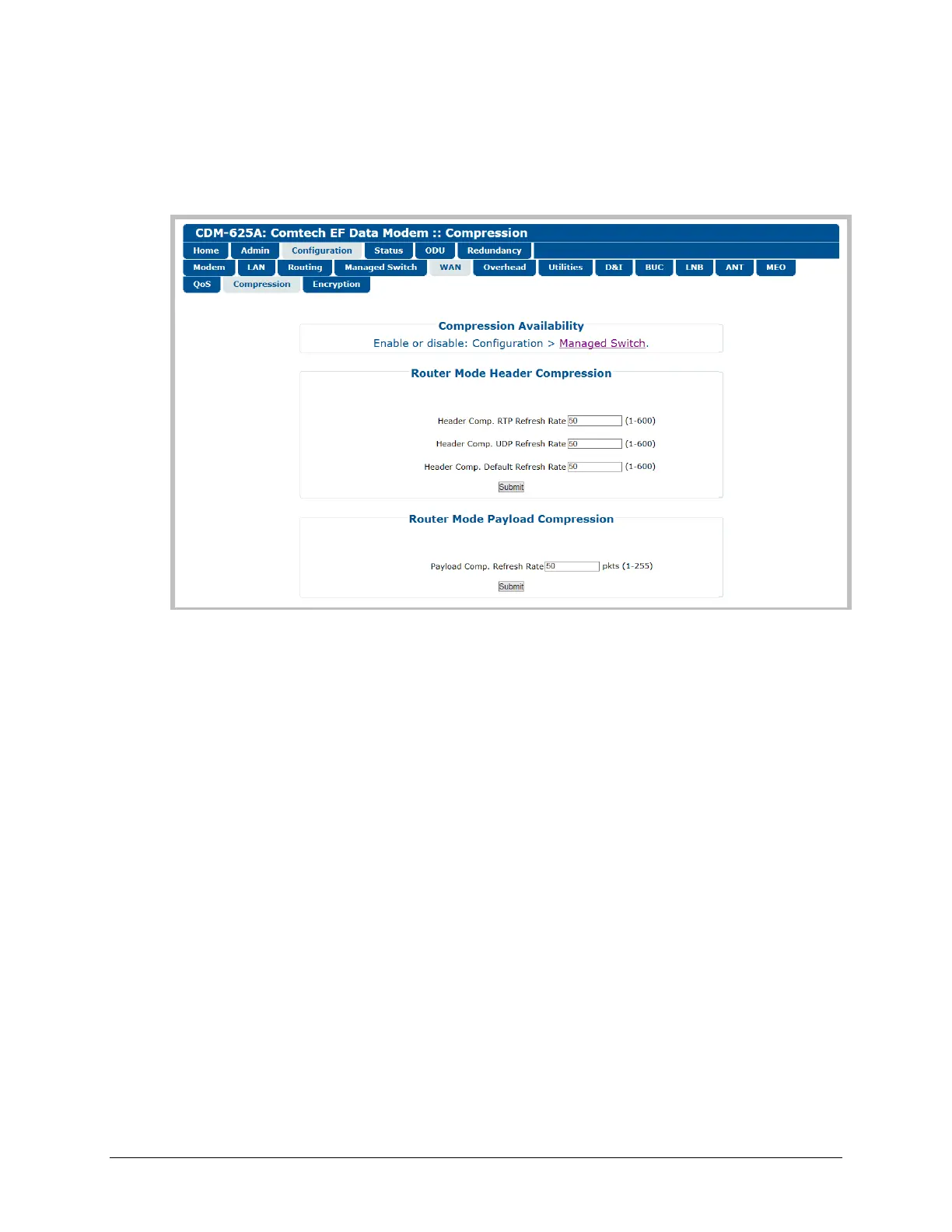 • Payload Comp. Refresh Rate – Enter for the Payload Compression refresh rate, in number of