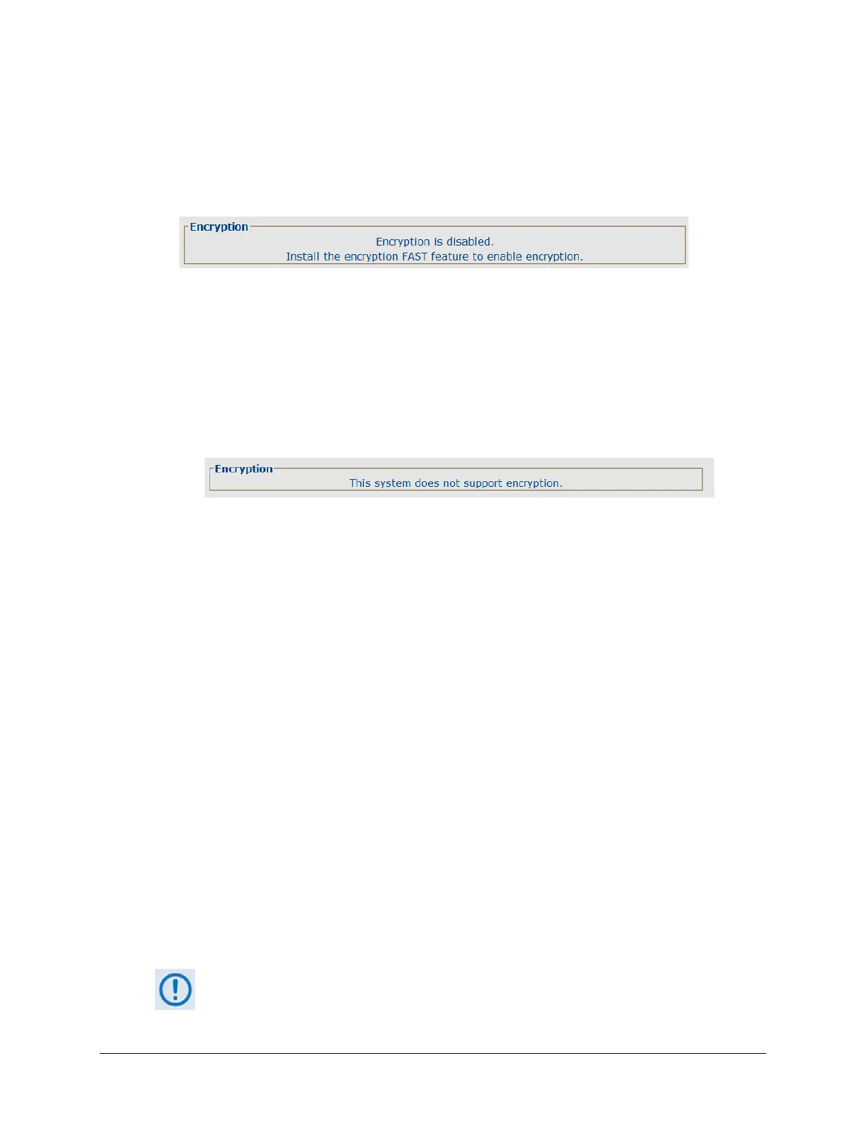 • When the AES Encryption FAST feature has not been purchased and is therefore disabled,