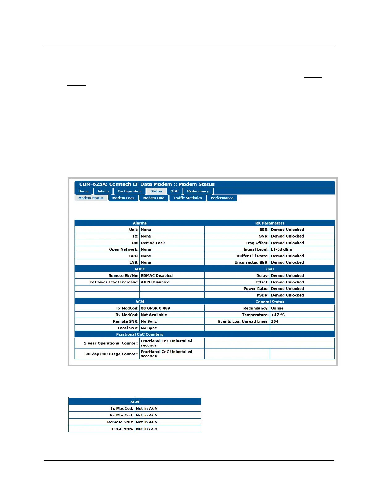 Figure 7-34. Status | Modem Status page (IP-ACM or V2-ACM Mode Active)