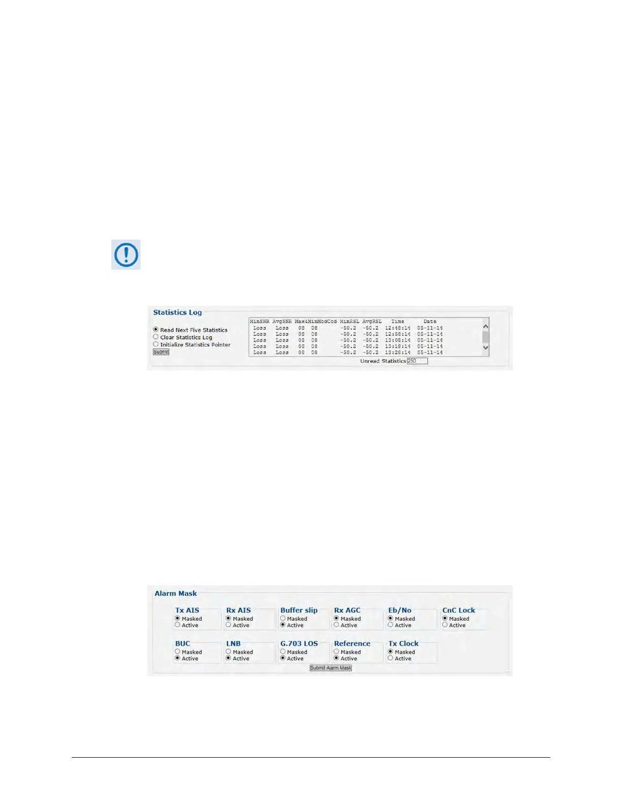 ACM) modes, Comtech EF Data recommends that you execute the Clear Statistics Log