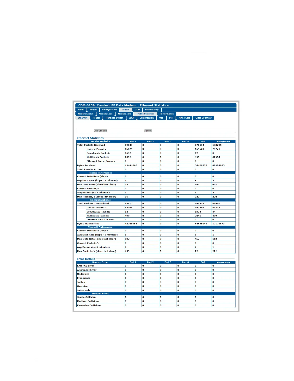Click [Clear Statistics] to clear all Ethernet statistics from the buffer.