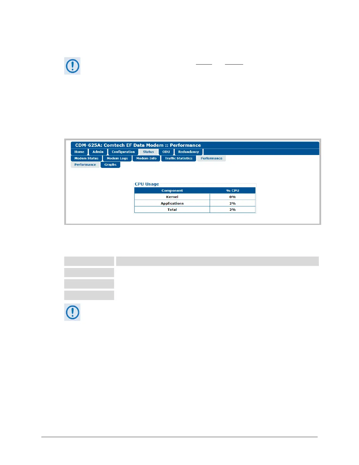 Use this page to view a tabulated “snapshot” of the CDM-625A performance statistics.