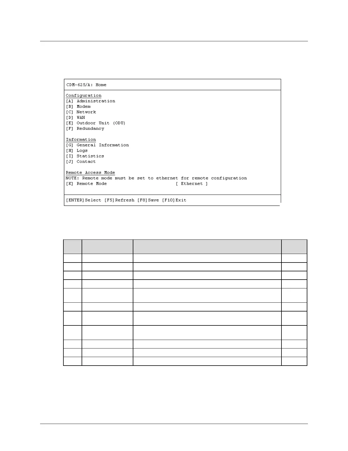 CLI’s Remote Access Mode is set to [Ethernet], press a hot key to access a configuration