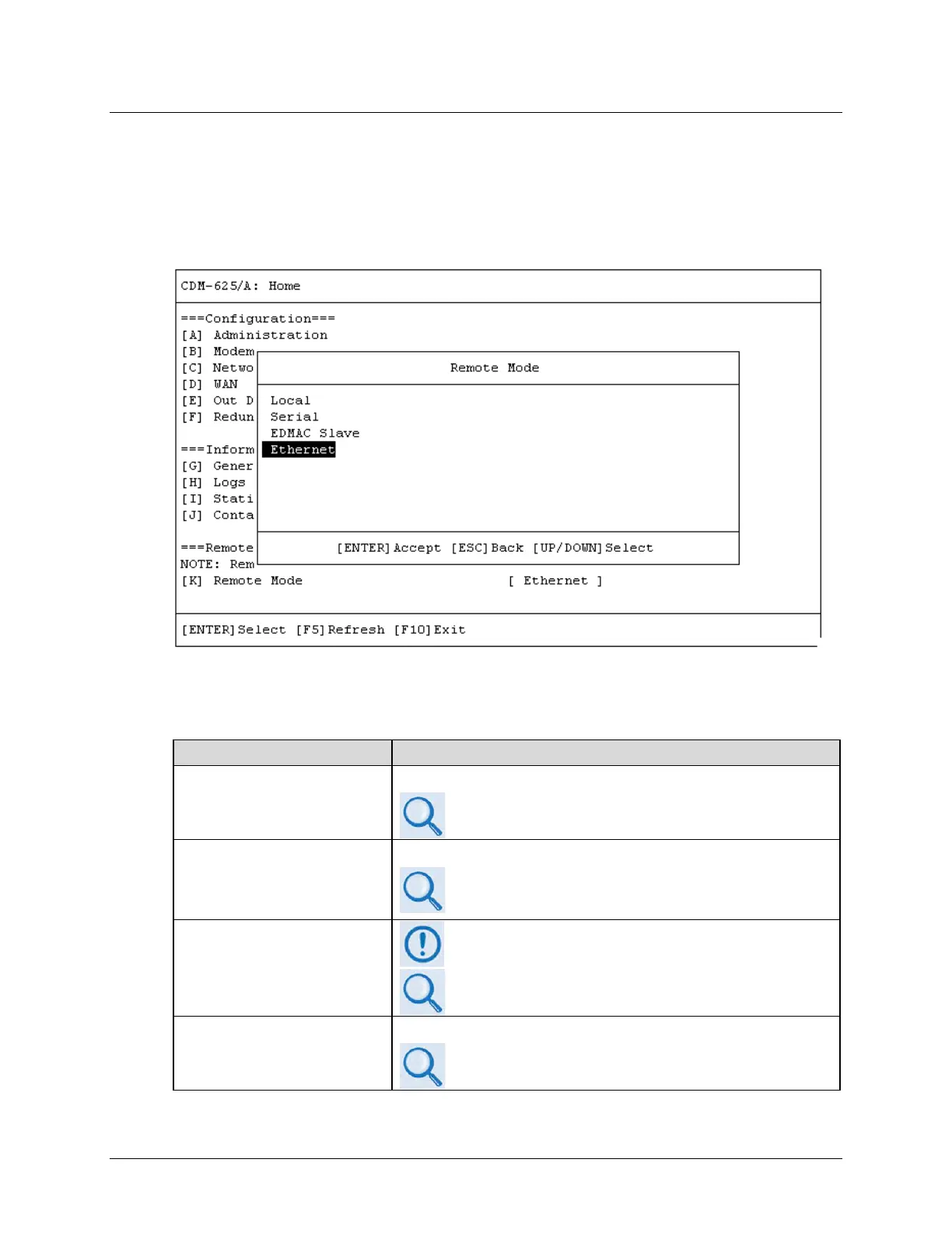 Then, use the ↑↓ arrow keys to select the Remote Mode as Ethernet, and press [ENTER] to