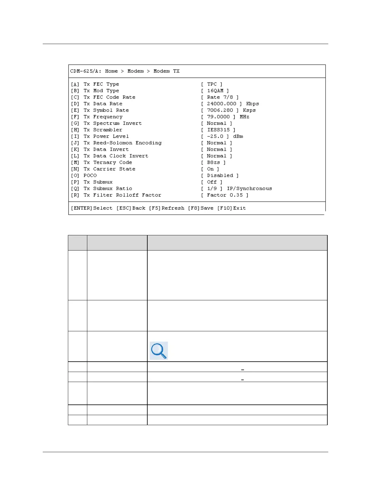 Use the ↑↓ arrow keys to select the Tx FEC Code Rate.