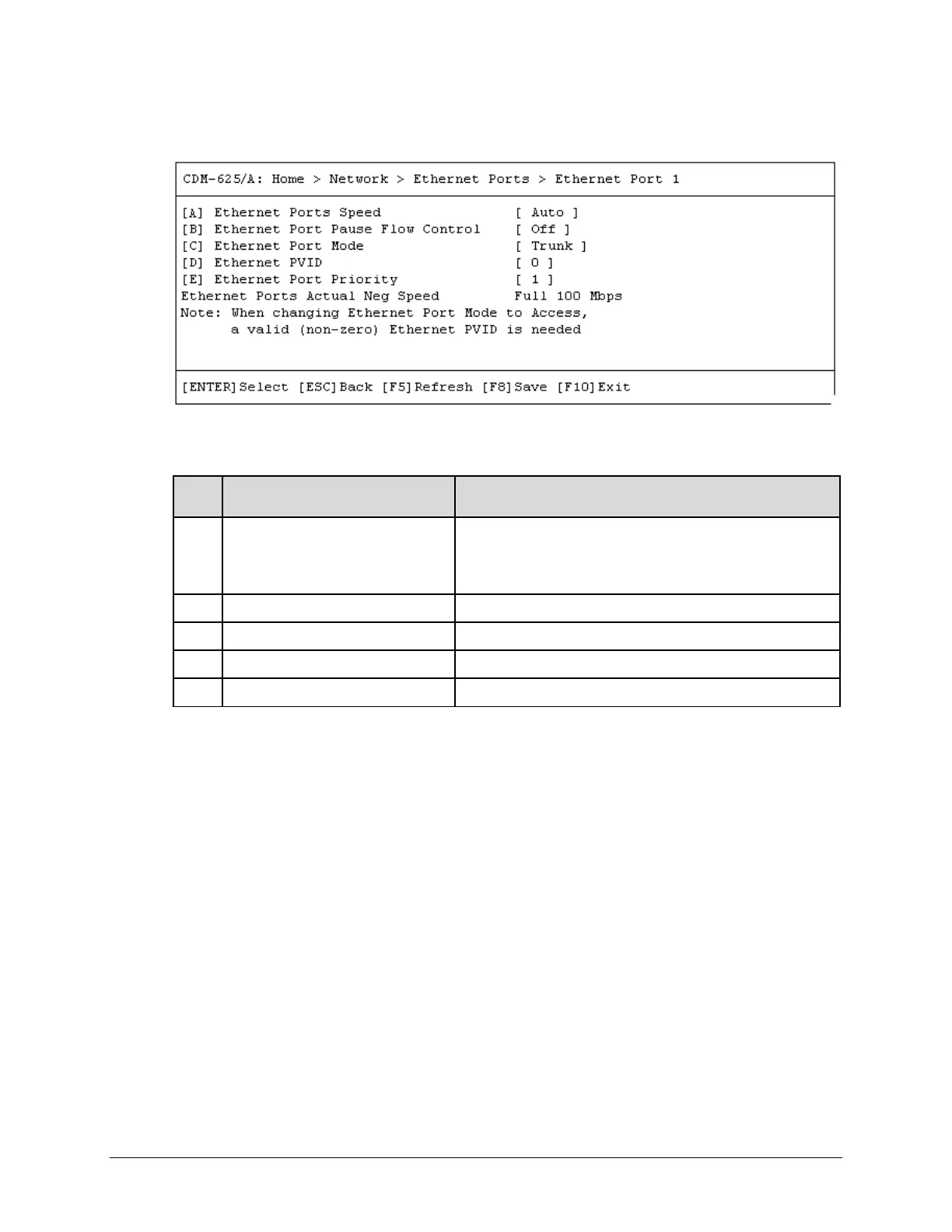 C Ethernet Port Mode Use the ↑↓ arrow keys to select Trunk or Access