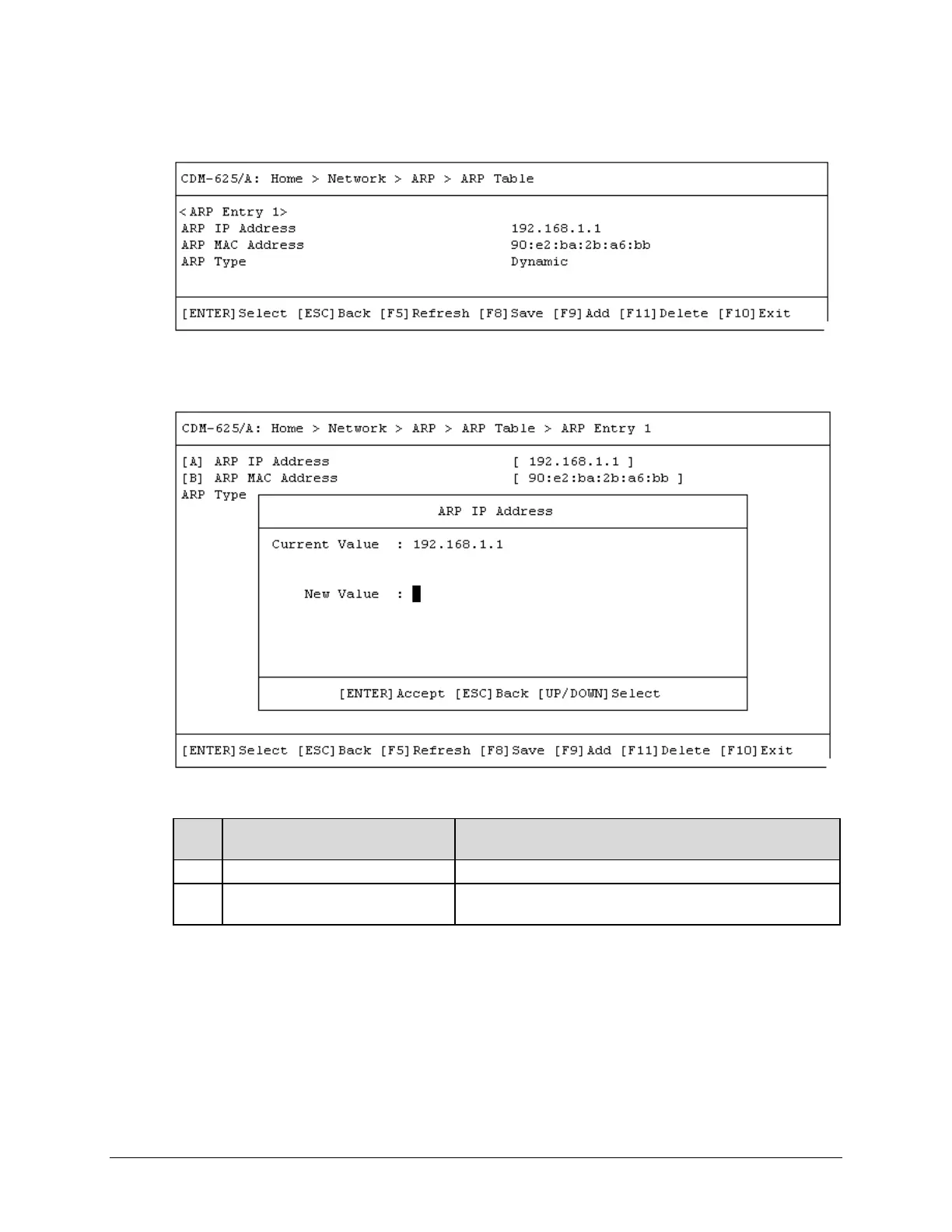 the available entries. You may also select a header (e.g., <ARP Entry 1>) and press [ENTER] to
