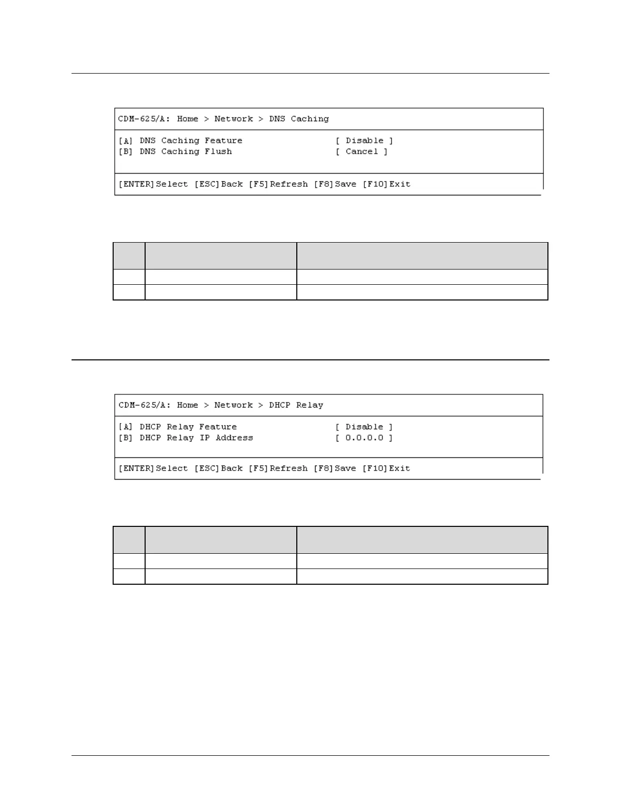 Open the DNS Caching page from the Network submenu. This page contains the following