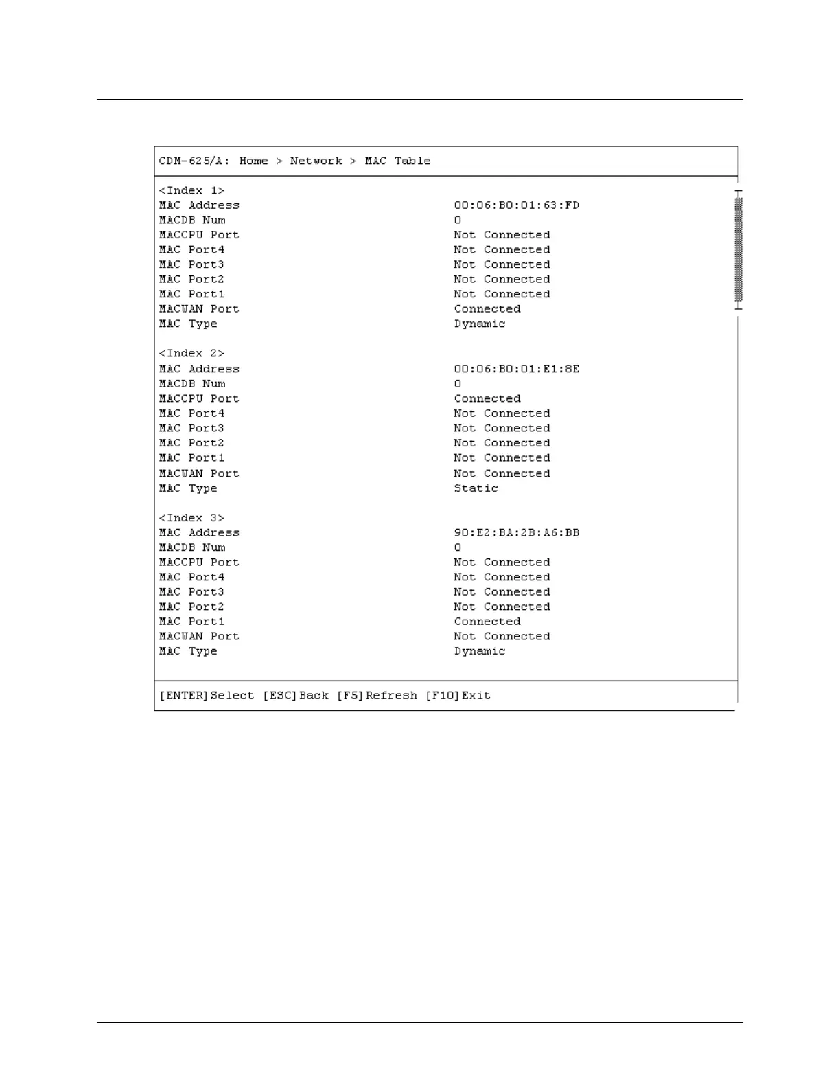 Open the MAC Table page from the Network submenu. Use this page to review status