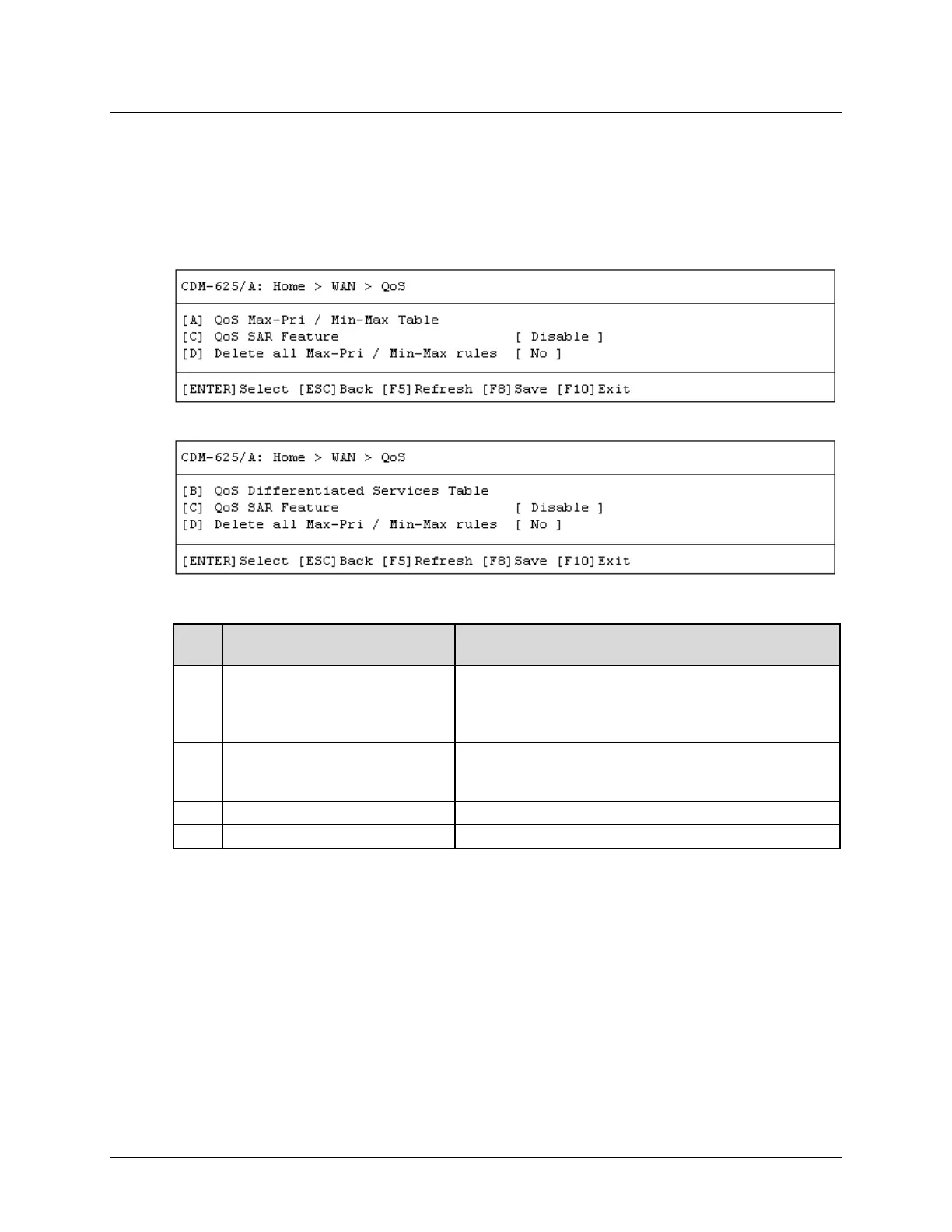 QoS Max-Pri / Min-Max Table