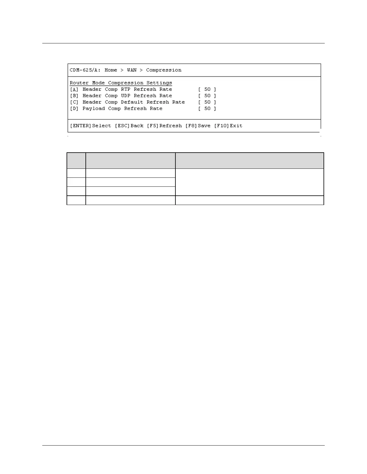 Open the Compression page from the WAN submenu. This page contains the following options: