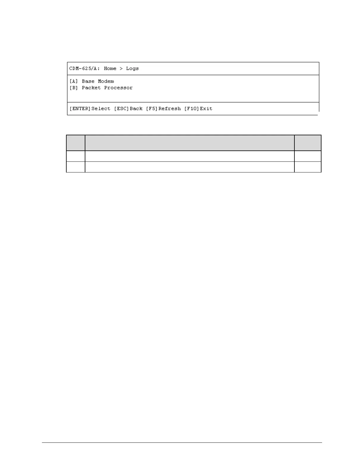 Open the Logs submenu from the Home menu. This submenu contains the following options: