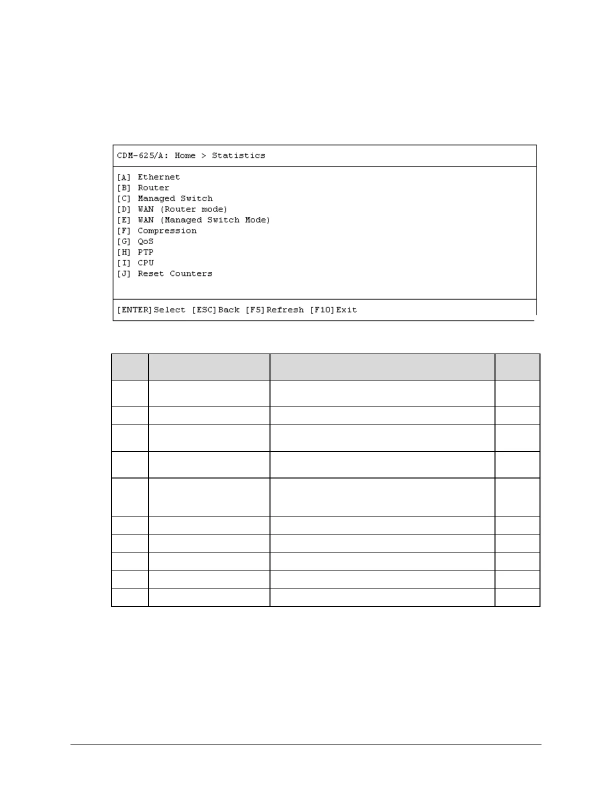 The Telnet CLI Statistics submenu provides access to a number of read-only informational pages.
