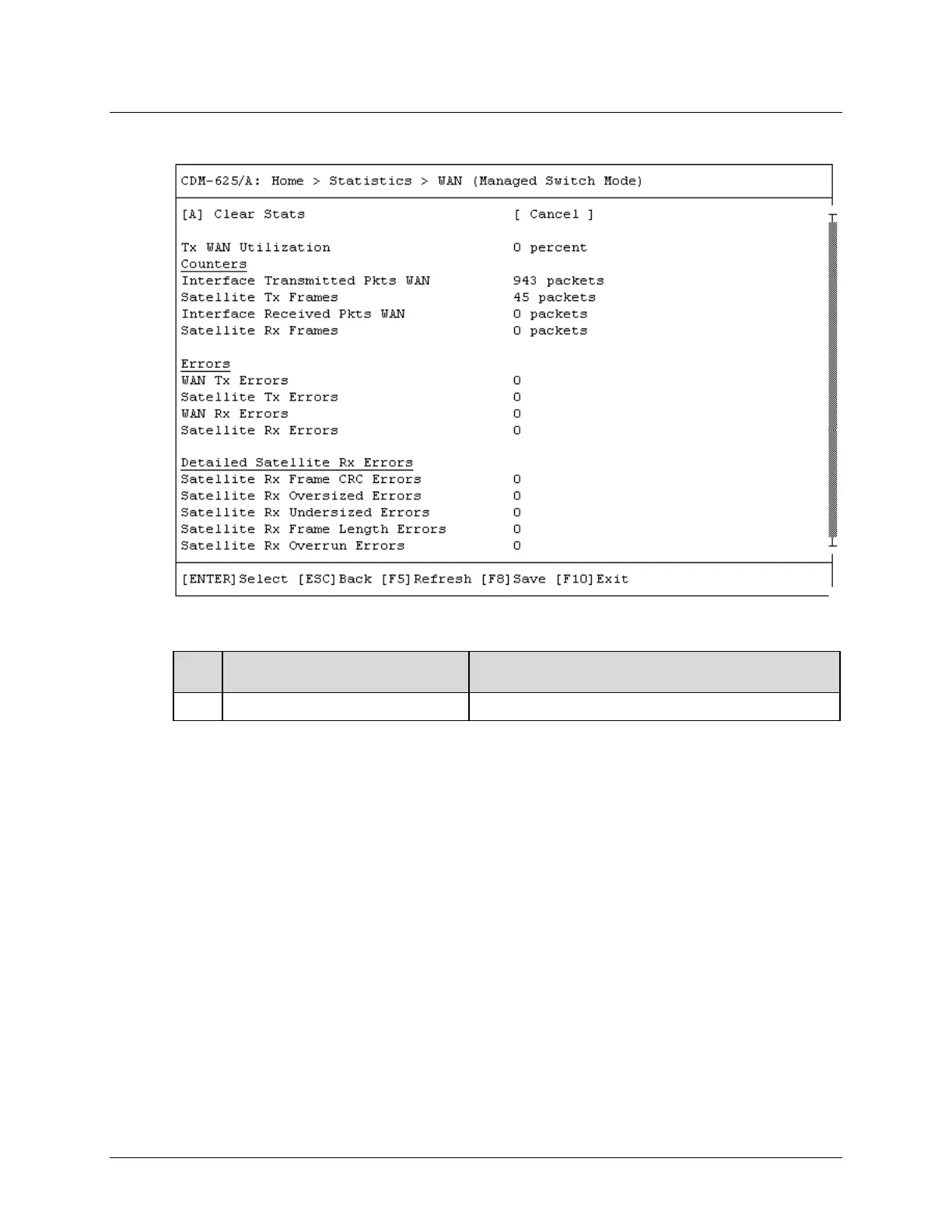 Open the scrollable WAN (Managed Switch Mode) statistics page from the Statistics submenu: