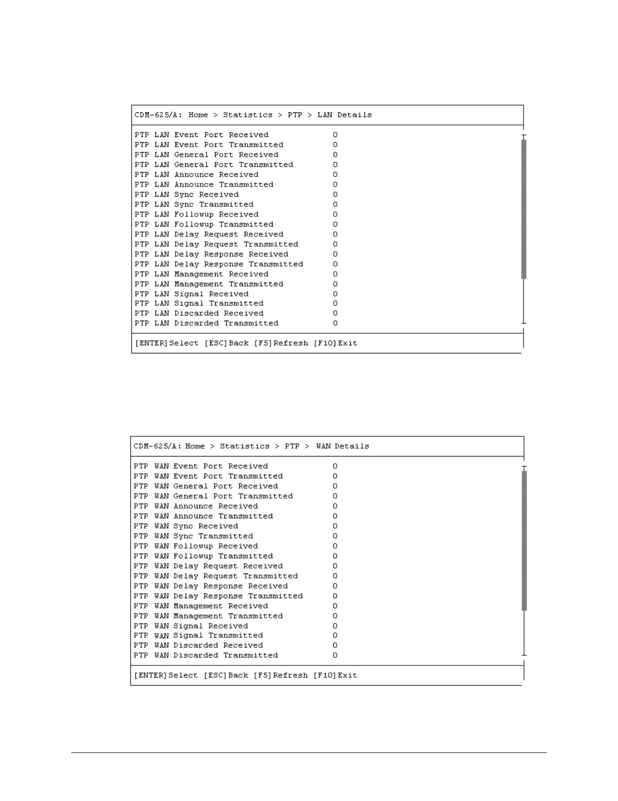 Open the LAN Details statistics page from the PTP page. Otherwise, press [ESC] to return to the