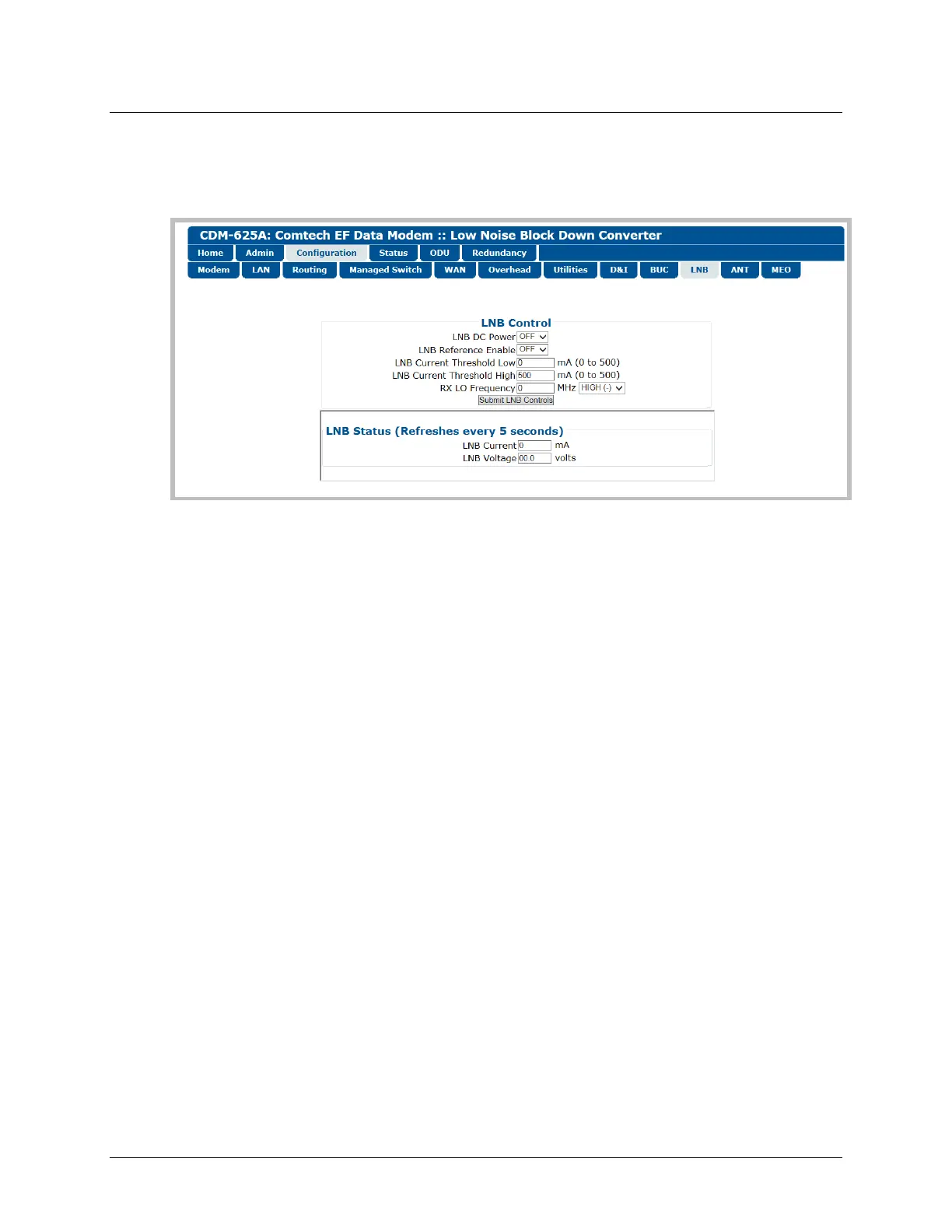 Click [Submit LNB Controls] to save.