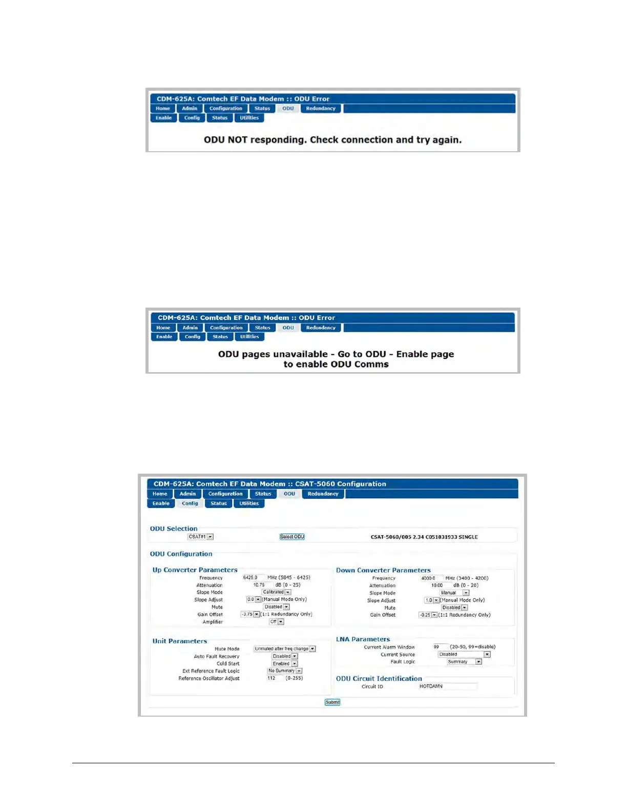 Figure 10-9 shows the ‘ODU | Config’ page as it appears with you configure the Comtech EF