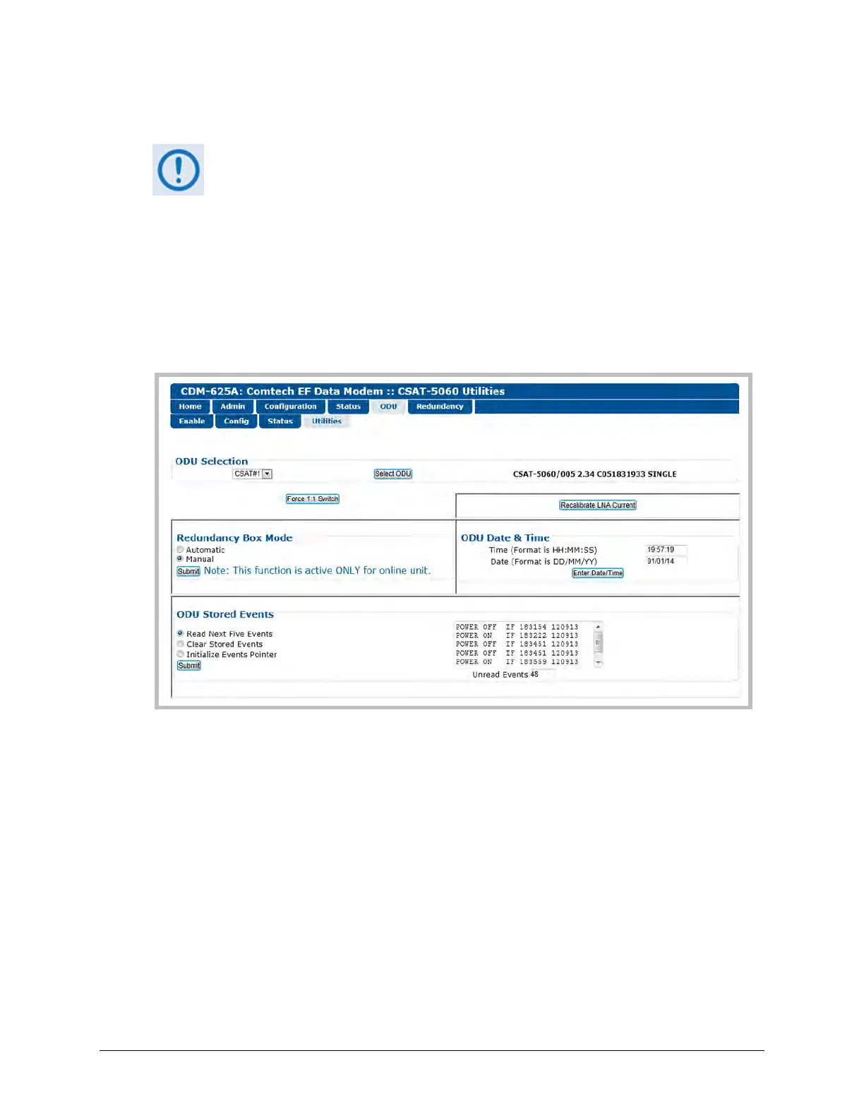 Figure 10-13. ODU | Utilities page (CSAT-5060)
