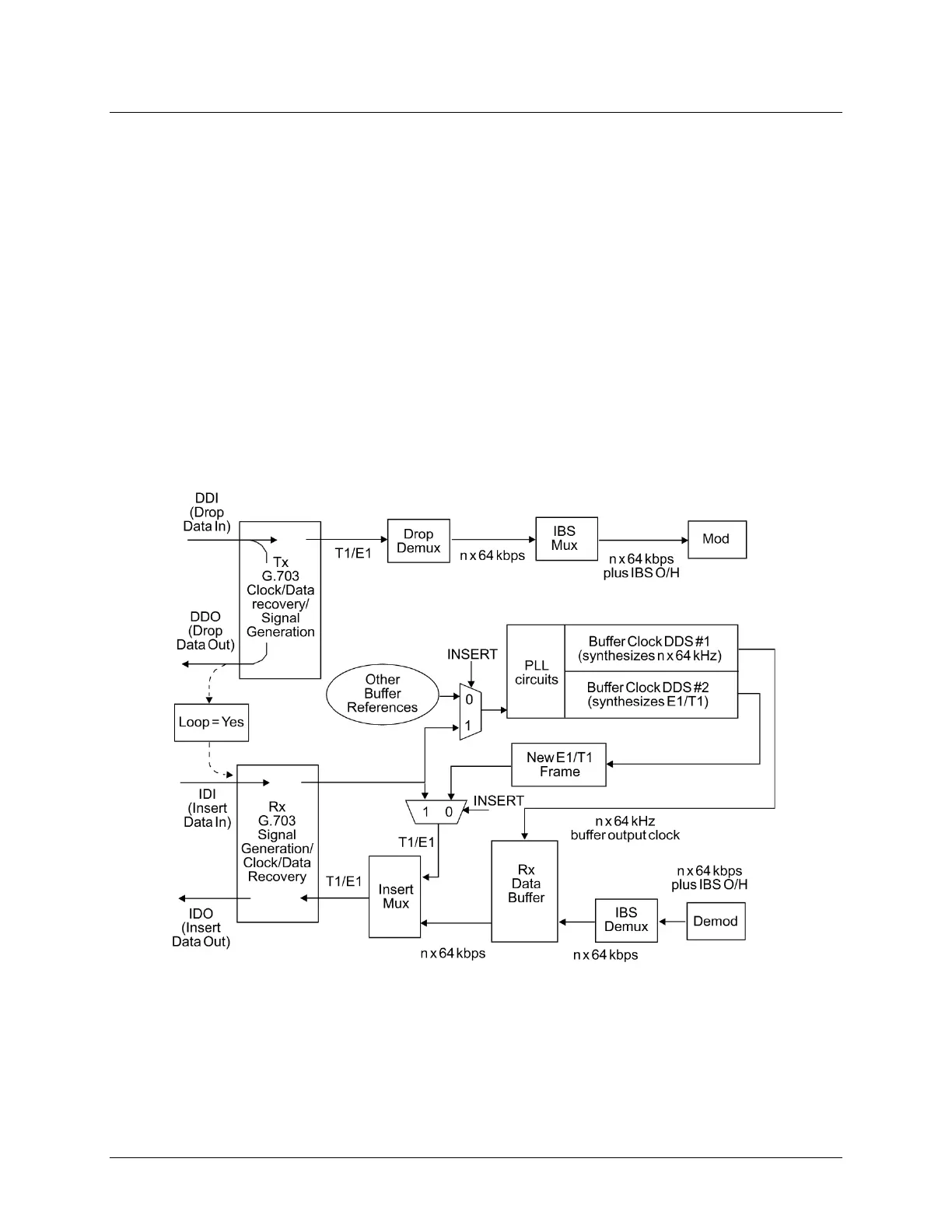 Drop Data Out (DDO) signal is automatically looped internally, to become the Insert Data In (IDI).