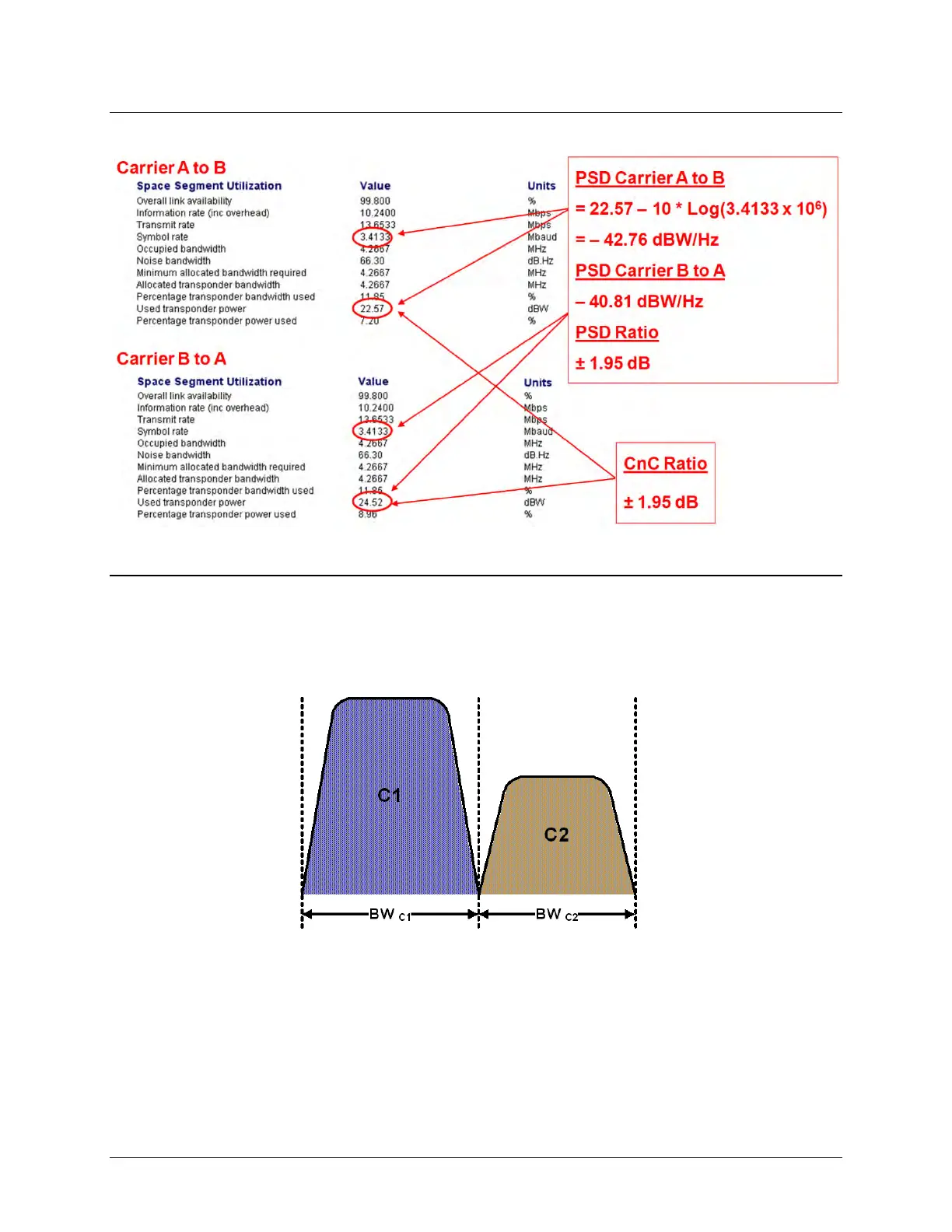 If the two carriers have the same Symbol Rate / Bandwidth, then the CnC Ratio is same as the