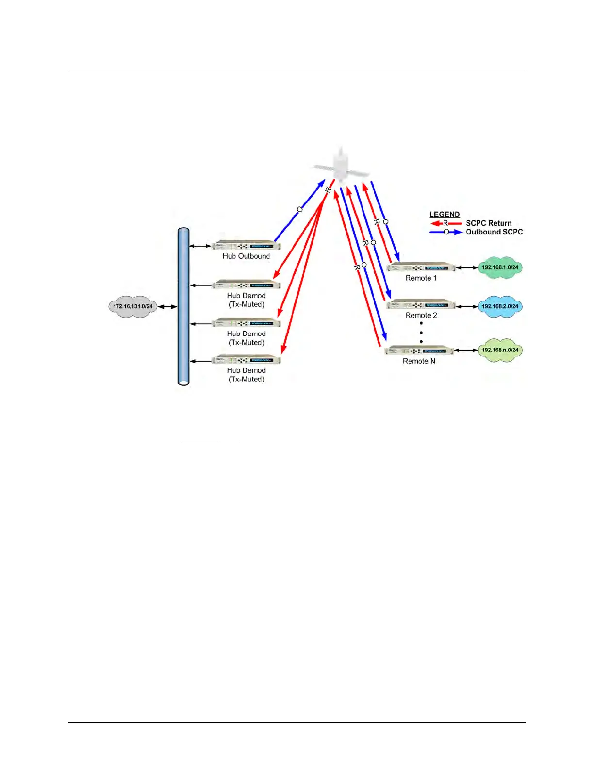 configuration features a Hub Outbound CDM-625A, with a rack of Hub Demods (Rx-only CDM-