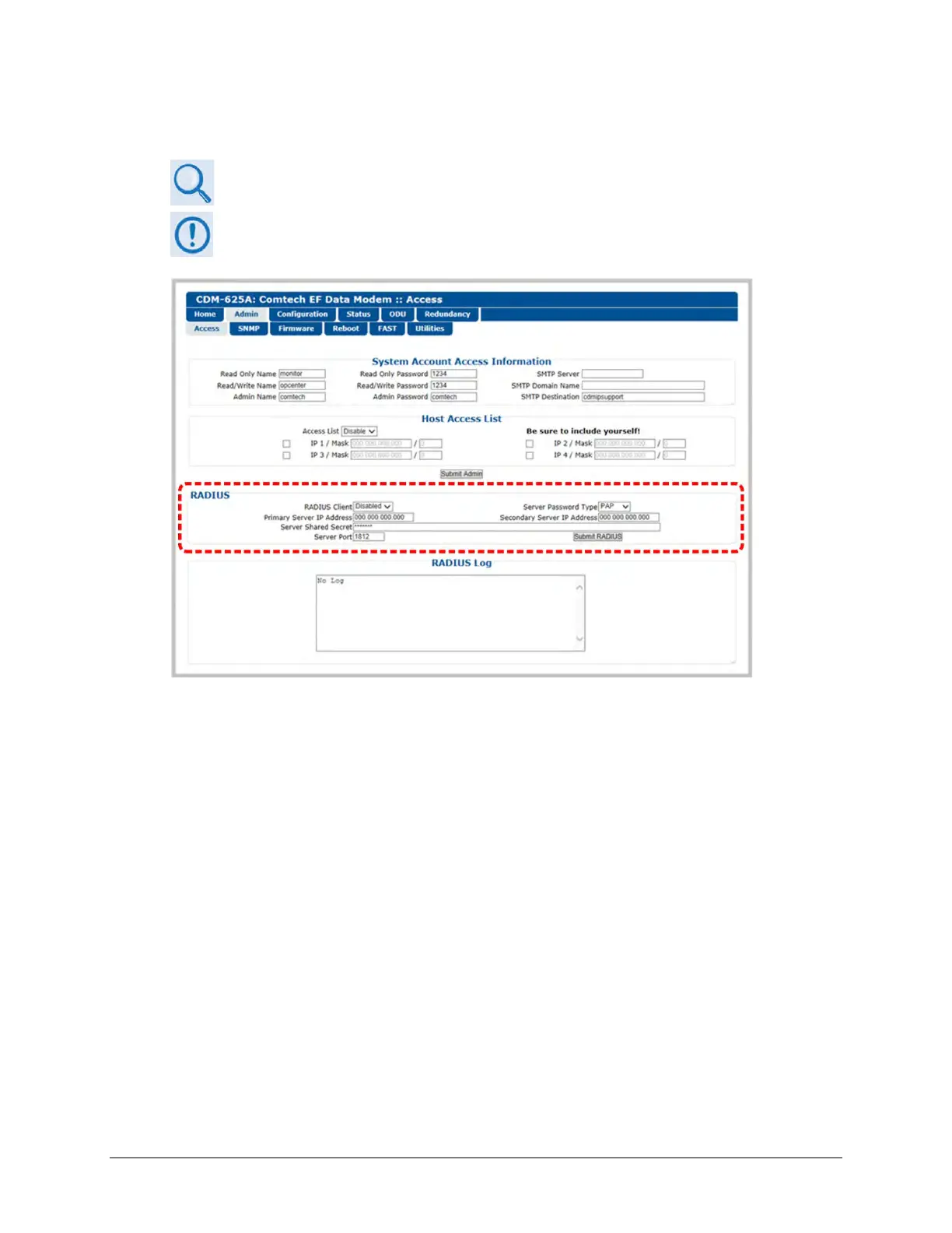 T.4.2 RADIUS M&C Using the CDM-625A HTTP (Web Server) Interface