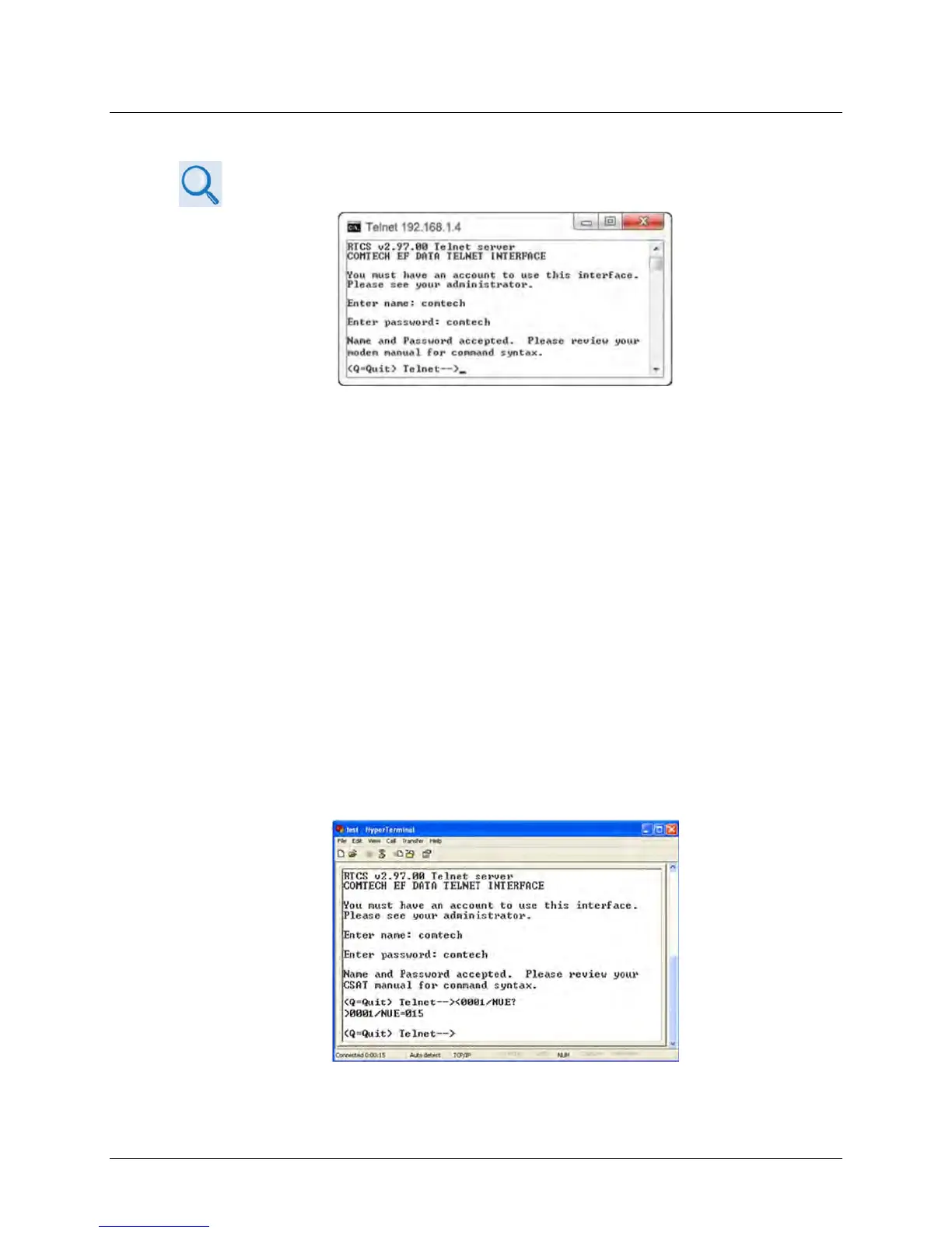configured as a Telnet client. Figure 7-2 shows an example of the login process and remote
