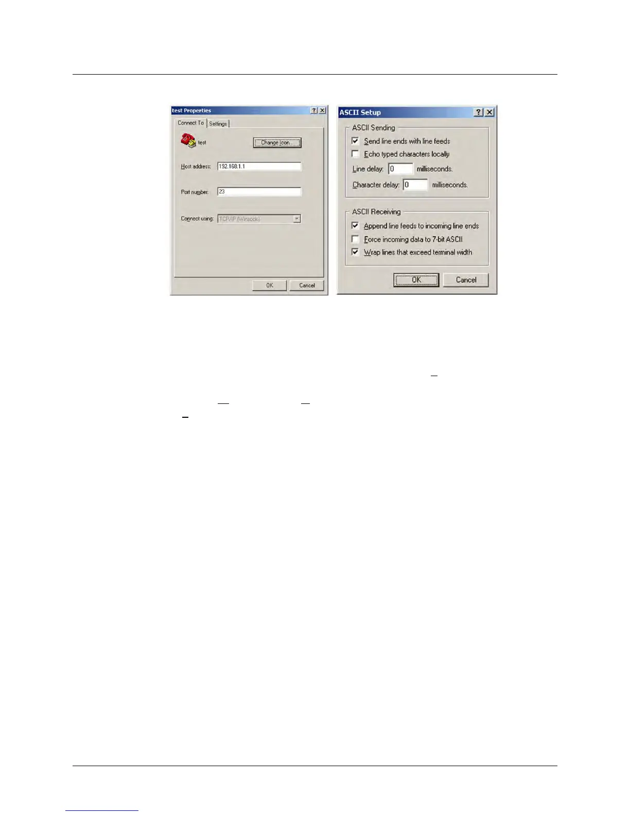 7.3.1.1 Configure HyperTerminal for Telnet Remote Control Operation