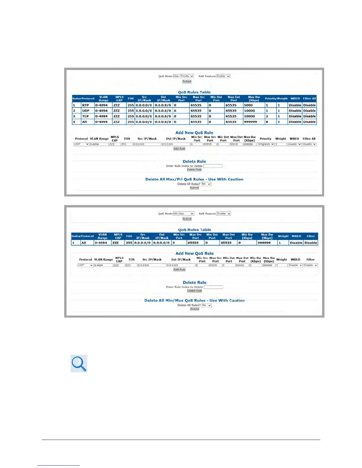 7.4.4.3.5.1.1 Configuration | WAN | QoS Page – Max/Priority, Min/Max
