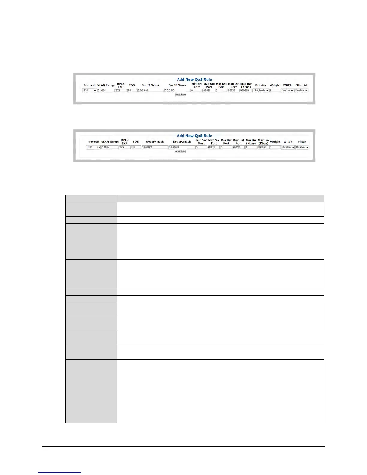 Use the available text boxes and drop-down lists in this section to create a new QoS rule. Note