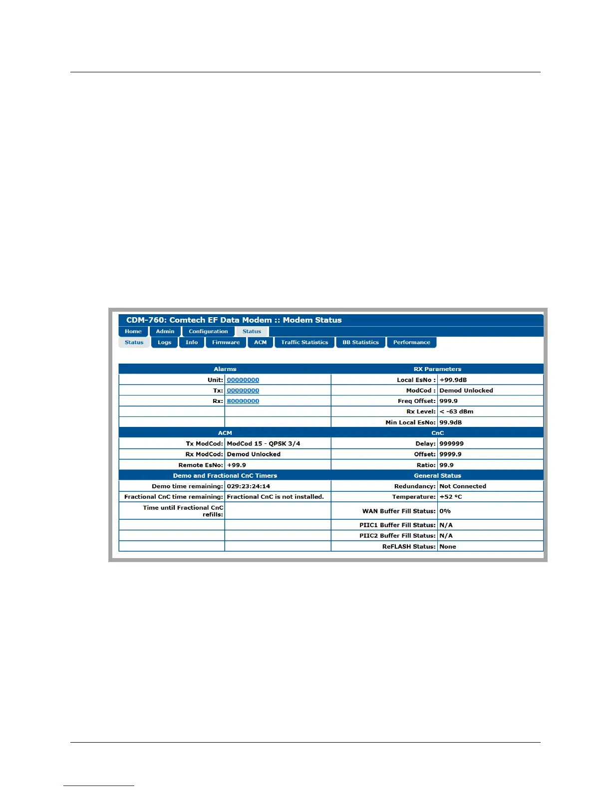 • Alarms Status – Click a hyperlink to view a popup window containing detailed information